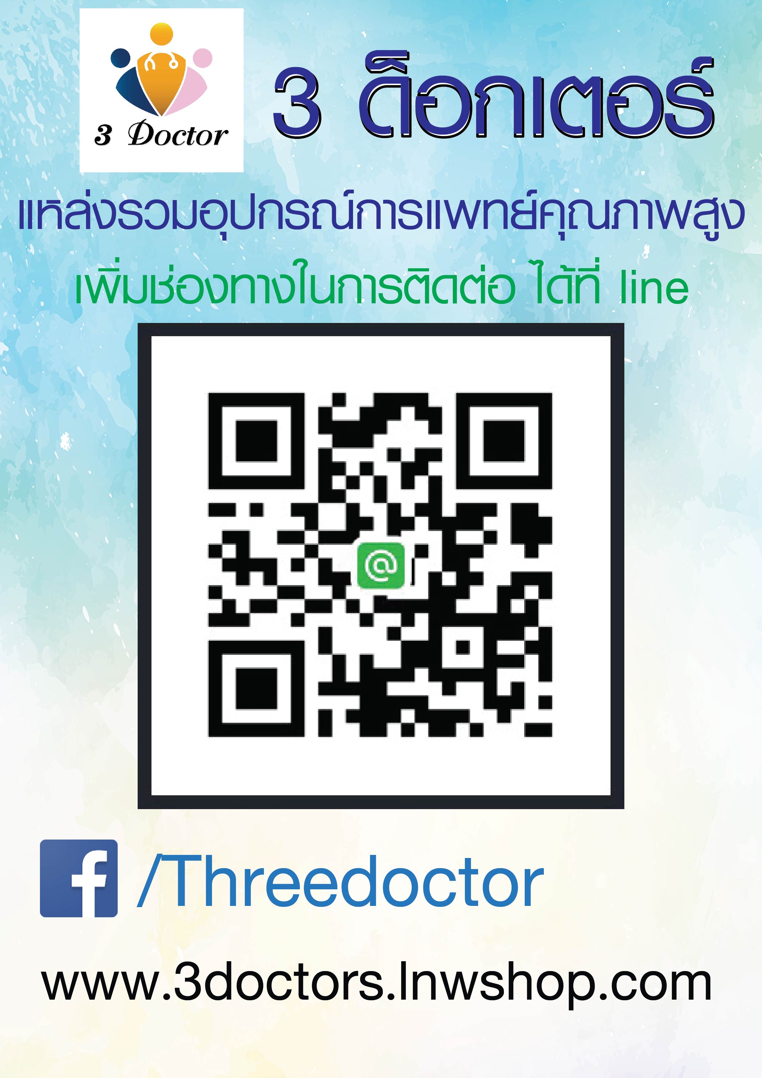 ยินดีเข้าสู้ร้าน three dortors เราขายอุปกรณ์ ทางการแพทย์ มากมาย โดยผู้เชียวชาญทางการแพทย์โดยตรง สินค้าของเรานำเข้ามาจากต่างประเทศ ซึงมีคุณภาพ และมีความแข็งแรงทนทาง